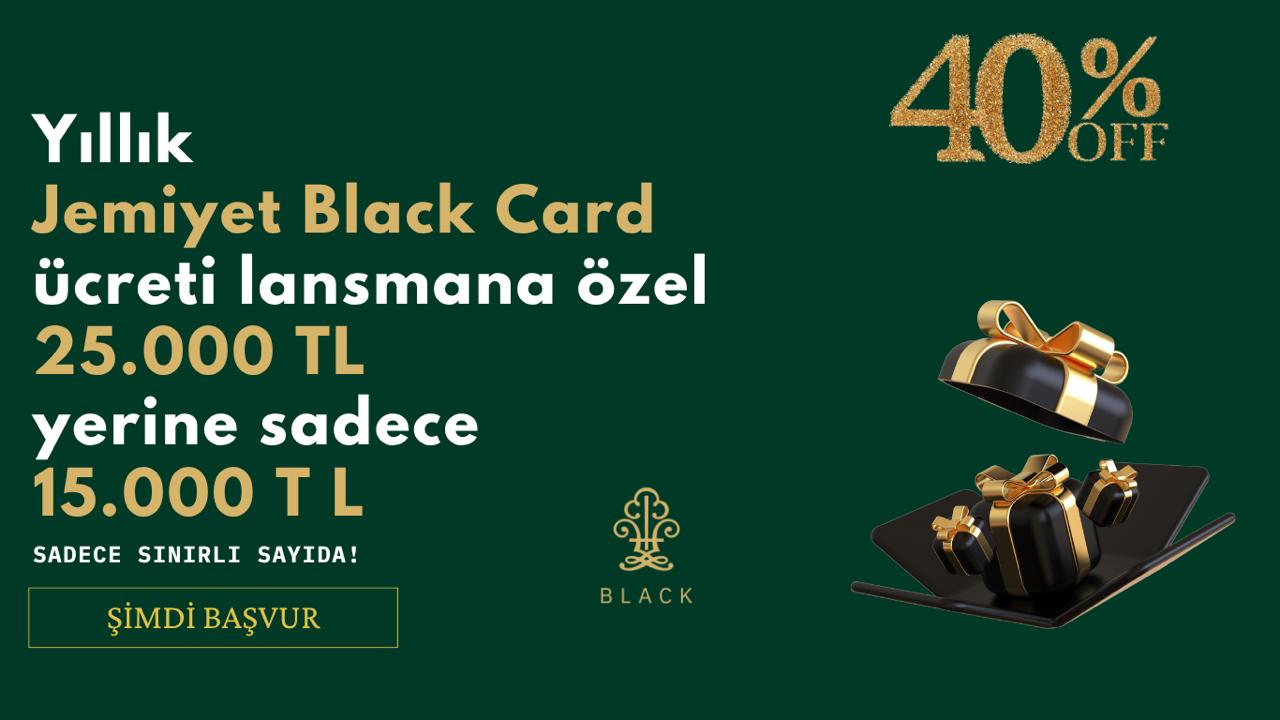 Gece hayatının kilit isimleri arasında yer alıyorsunuz. Jemiyet Black’in ayrıcalıklı dünyasına hoş geldiniz. Özenle seçilmiş kişilerin, gece hayatındaki anahtarı Jemiyet Black Card ile dünyaca ünlü sanatçıların performans sergilediği etkinliklere özel davetlisiniz, sınırsız eğlenceye adım atın. Dilediğiniz saatte, dilediğiniz mekanda dilediğiniz kadar eğlenin…